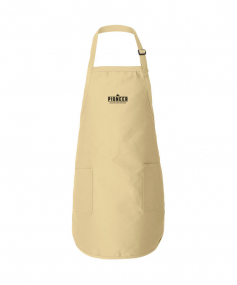 Full-Length Apron made of 7.5 oz., 55 % cotton / 45% polyester. Measures 22" W x 30" H, and has two patch pockets. It also features an adjustable neck strap with a buckle and waist side ties.