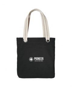 The Allie Tote is perfect for shopping, commuting or sightseeing. Contrast lining, striped handles and large metal grommets add a touch of whimsy to this casual tote. 11 Oz., cotton canvas. Interior zippered pocket. 13.25" W x 15.75" H x 3.5" D.