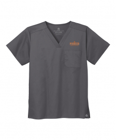 This is an WonderWink Unisex WorkFlex Chest Pocket V-Neck Top. Features 65/35 poly/cotton, mechanical stretch, v-neckline. This top has a class fit and also features side vents and the WonderWink heat transfer logo at left hem.